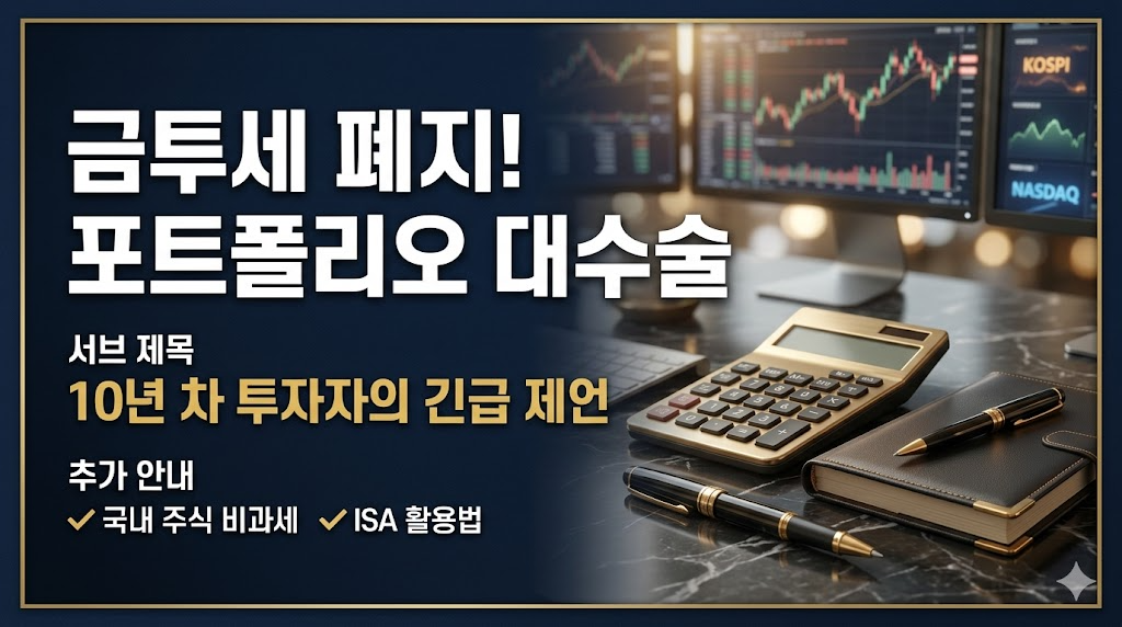 사실 저는 금투세 도입을 대비해서 해외 주식 비중을 늘려야 하나 고민도 많았고, 실제로 일부 수익 실현을 미리 해야 할지 계산기까지 두드려 봤었습니다. 하지만 이제 폐지가 확정되면서 제가 세웠던 중장기 투자 전략을 전면 수정해야 할 시점이 온 것 같더라고요.